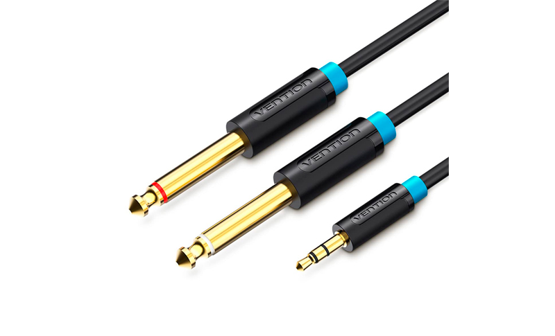 Geralmente mono (necessita de dois cabos para áudio estéreo).