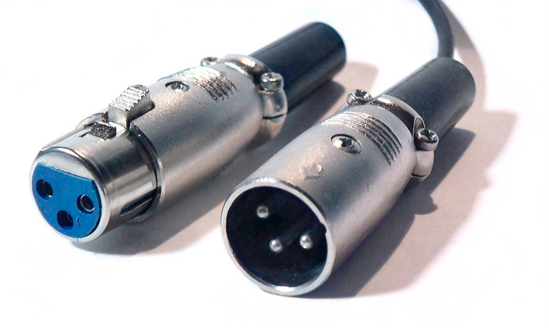 Descrição: Conector de três pinos, usado principalmente em microfones e equipamentos profissionais de áudio.